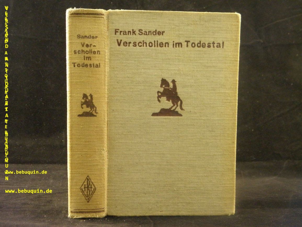 SANDER, Frank: Verschollen im Todestal. Bremen (Burmester), ca 1935. 256 S. ill. OLn. NaV, gutes Ex. = Burmester’s Abenteuer-Serie. EA. Frank Sander hieß in Wirklichkeit Otto Neitsch und war Berliner Senator. Geboren 1892 in Eckernförde, Vater dreier Söhne und gestorben 1941 in Berlin.