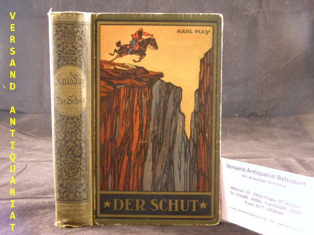 MAY, Karl: Der Schut. 177.– 190. Tsd. Volksausgabe. Radebeul (Karl May), (1932). 645 (2) S. farb. ill. OHLn. etwas schief gelesen, Kanten berieben, Rücken geblichen. = Gesammelte Werke, Bd. 6. Hermesmeier / Schmatz GW 6.25.