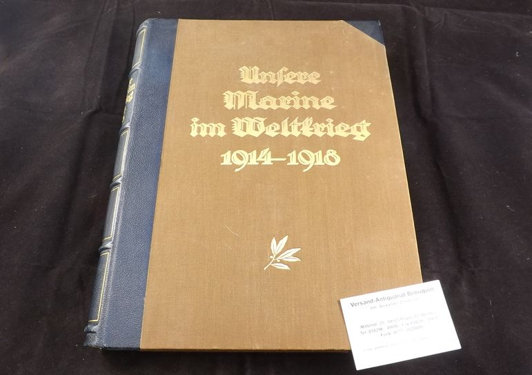 SCHIFFAHRT.– MANTEY, Eberhard v.: (Hrsg.) Unsere Marine im Weltkrieg 1914 – 1918. Berlin (Vaterländischer), 1927. Fol. VIII, 490 Seiten, 1 Blatt mit sehr zahlreichen, teils farbigen Abbildungen (teils auf Tafeln), einigen Faksimiles sowie teils gefalteten farbigen Karten. OHLdr mit Goldprägung. sehr feines Ex. EA.