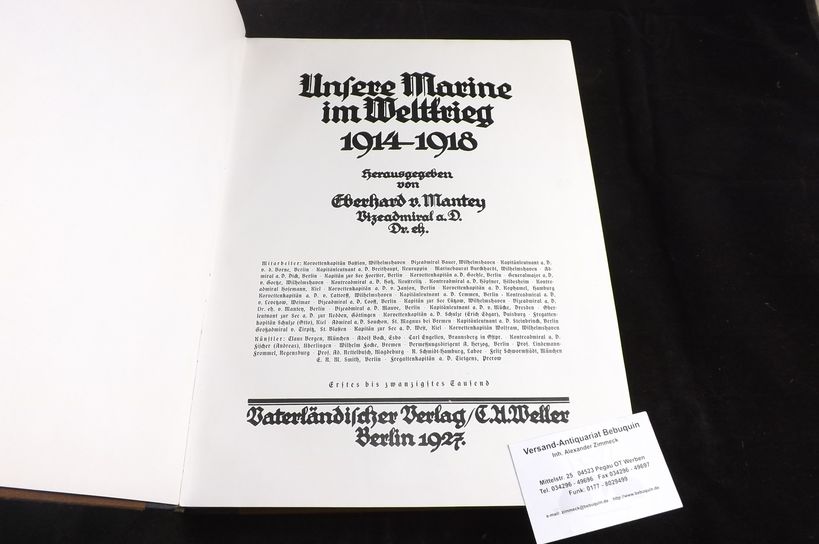 MANTEY, (Hrsg.) Unsere Marine im Weltkrieg 1914 – 1918.