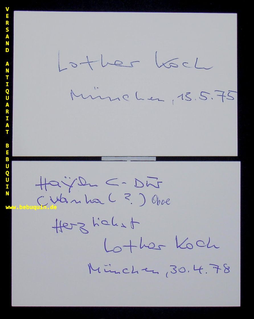 KOCH, Lothar (Oboist): 2 eigenhändig signierte und datierte Autogrammkarte. München, 1975 +1978. 8 x 12,5 cm. 2 Karteikarte. Lothar Koch (* 1. Juli 1935 in Velbert; † 16. März 2003 in Salzburg) war ein deutscher Oboist. (Wikipedia)