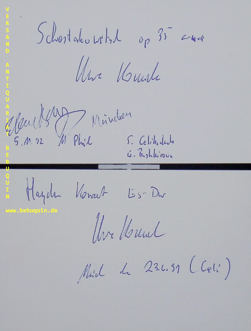 KOMISCHKE, Uwe (Trompeter): 2 eigenhändig signierte und datierte Autogrammkarten. München (Philharmonie), 1991 + 1992. 8 x 12,5 cm. 2 Karteikarten. Uwe Komischke (* 1961 in Schwelm/Nordrhein-Westfalen) ist ein klassischer Solotrompeter. (Wikipedia)