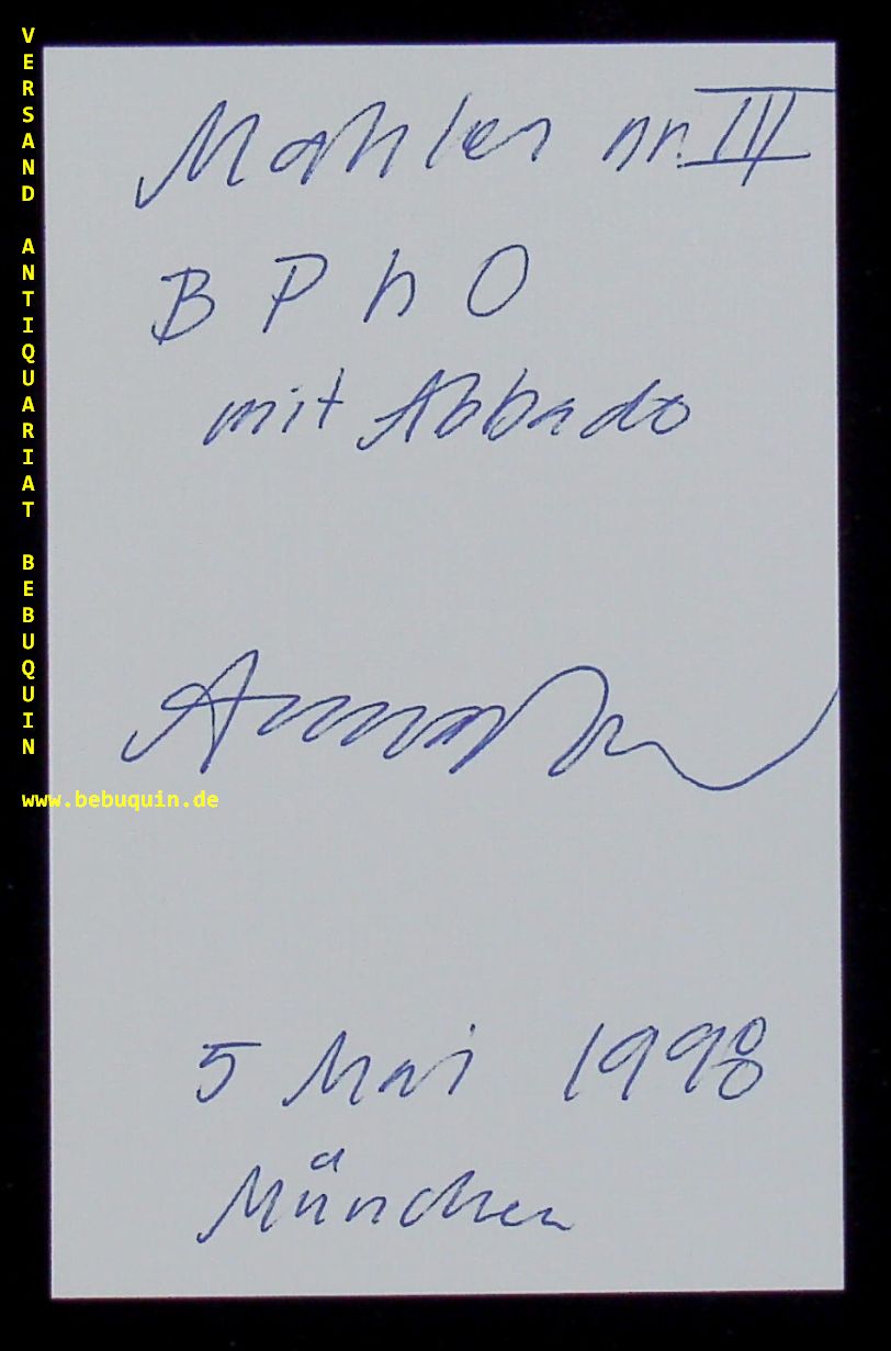 LARSSON, Anna (Alt): eigenhändig signierte und datierten Autogrammkarte. München (Philharmonie), 5.5.1998. 8 x 12,5 cm. Karteikarte. Anna Larsson (geboren am 10. September 1966 in Stockholm) ist eine schwedische Opernsängerin der Stimmlage Alt.. (Wikipedia)