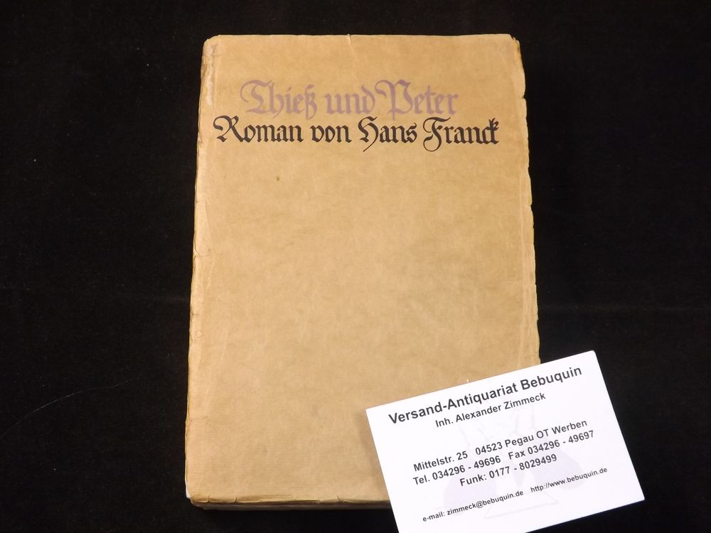 FRANCK, Hans: Thieß und Peter. Roman. Berlin (Oesterheld), 1910. 305 (3) S. OBr. Kanten unbeschnitten. sehr seltene EA des Erstlings WG² 1.
