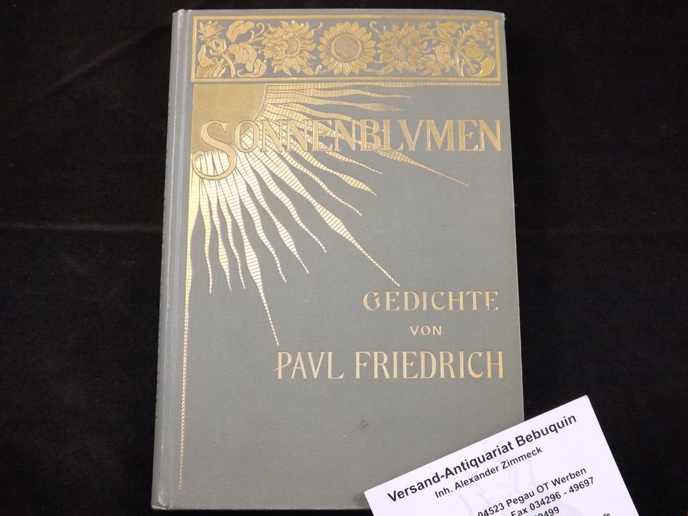 FRIEDRICH, Paul: Sonnenblumen. Gedichte. Berlin (Heichen), 1896. 145 S. OLn. mit reicher Goldprägung. NaV. EA des Erstlingswerks.