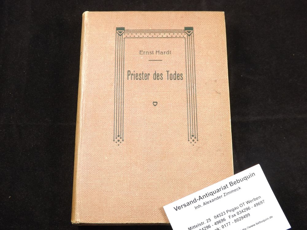 HARDT, Ernst: Priester des Todes. 13 Novellen. Berlin (Fischer), 1898. 201 S. 3 Bl. OLn. (?) Vorderdeckel der OBr. mit eingebunden. EA des Debüts WG 1.