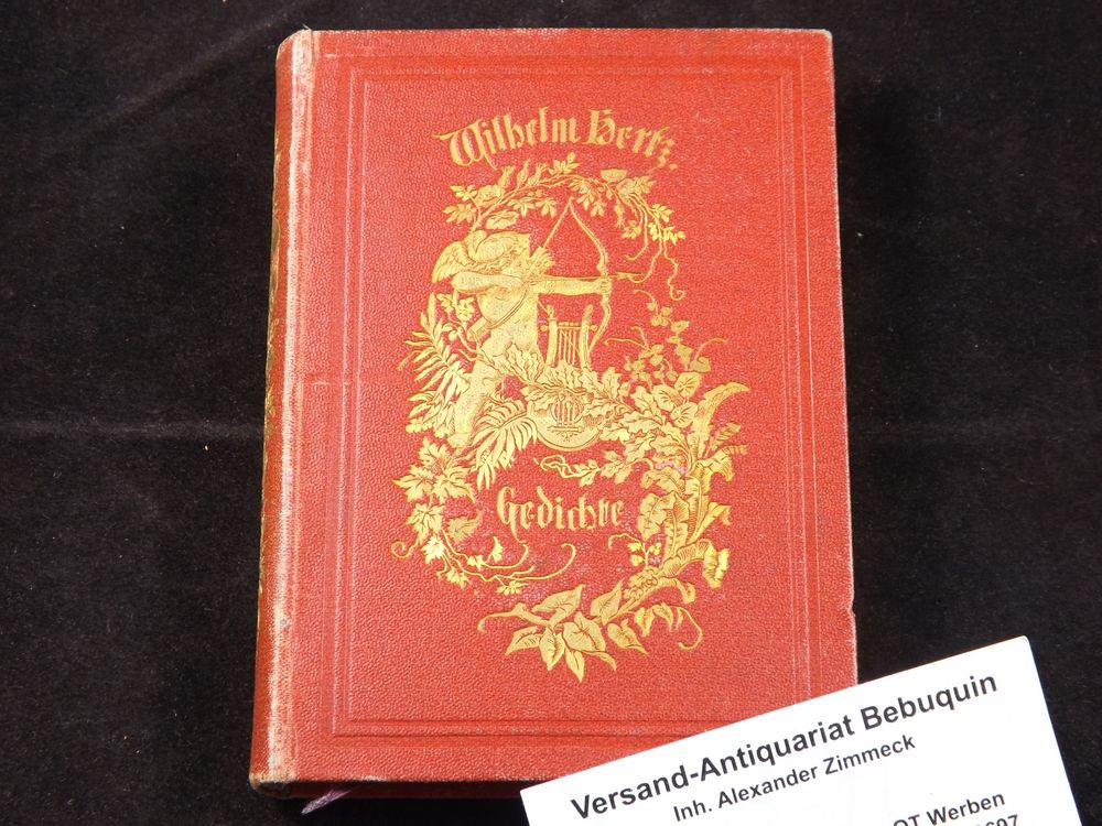 HERTZ, Wilhelm: Gedichte. Hamburg (Hoffmann und Campe), 1859. 12°. VII, 259 S. reich verziertes OLn. mit dreiseitigem Goldschnitt. Ex libris auf Innendeckel. EA des Erstlingswerks WG² 1.
