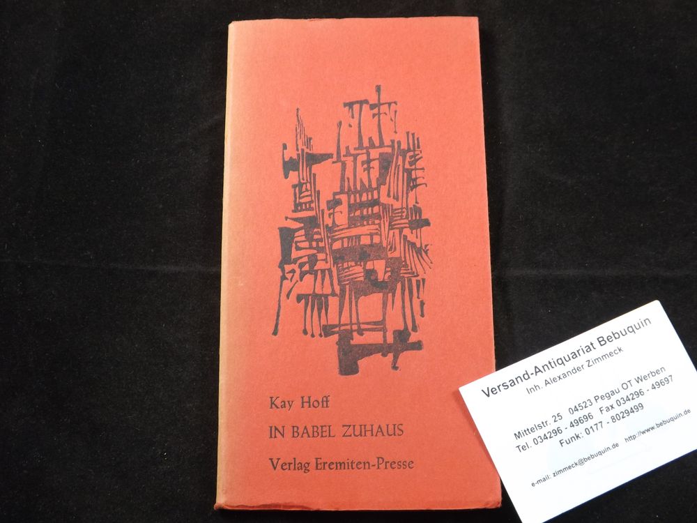 HOFF, Kay: In Babel zuhaus. (Gedichte). Stierstadt (Eremiten Presse), 1958. kl. 8°. 28 S. mit 5 Zeichnungen von Hans Georg Lenzen als Blockbuch gebudnen. ill. OKart. 1 von 200 Ex. der EA des Erstlingswerks des 34-Jährigen.