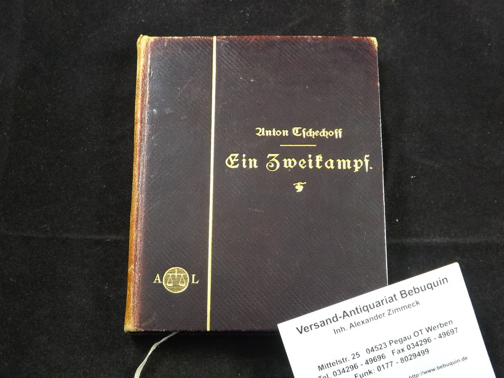 HOLM, Korfiz: (Übers.) Anton Tschechoff: Ein Zweikampf. Erzählung. Leipzig (Langen), 1897. kl. 8°. 143 (1) S. mit Jugendstil-Buchschmuck von Bruno Paul. OLn. mit Goldprägung und mit eingebundenem ill. OKart. Rücken geblichen, hinteres Gelenk etwas fest. seltene EA des Erstlingswerks WG² 1.