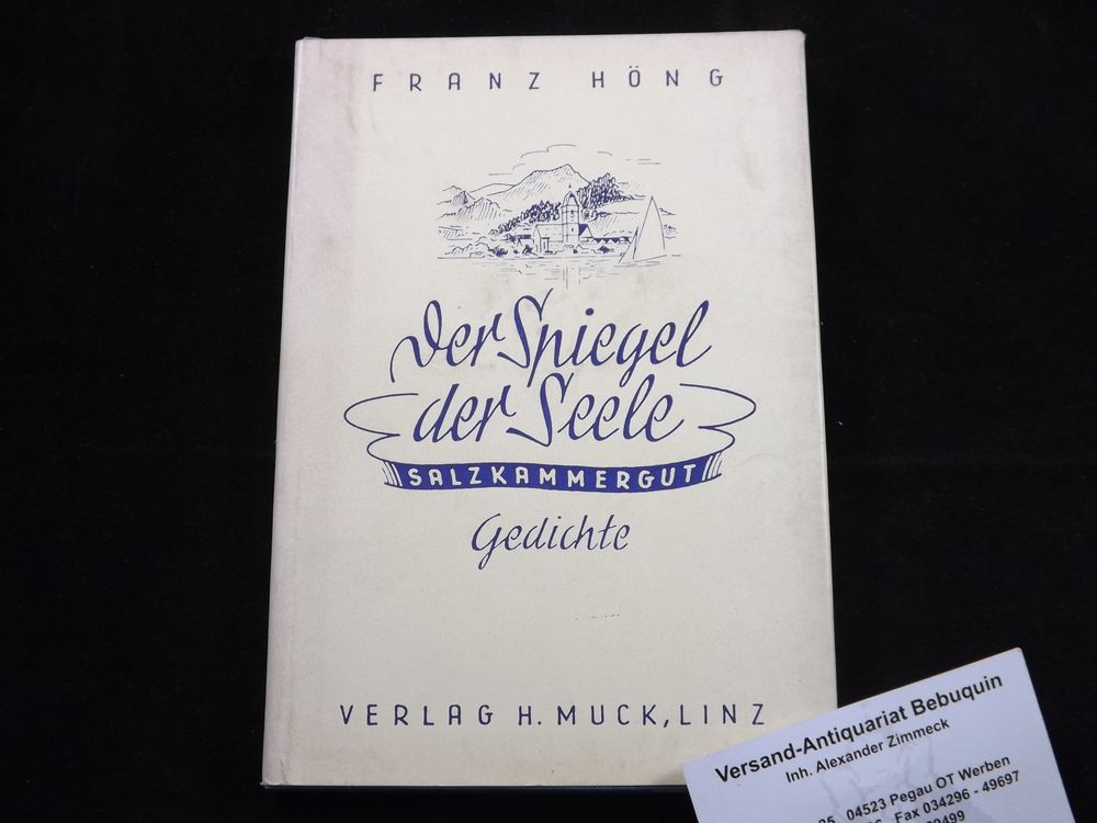 HÖNG, Franz: Der Spiegel der Seele. Salzkammergut. Gedichte 1924-1948. Linz (Muck), 1949. 128 S. OLn. mit OUmschl. leicht gebogen. EA des Erstlingswerks mit eigenhändiger, datierter, voll signierter Widmung des Verfassers auf Vorsatz.