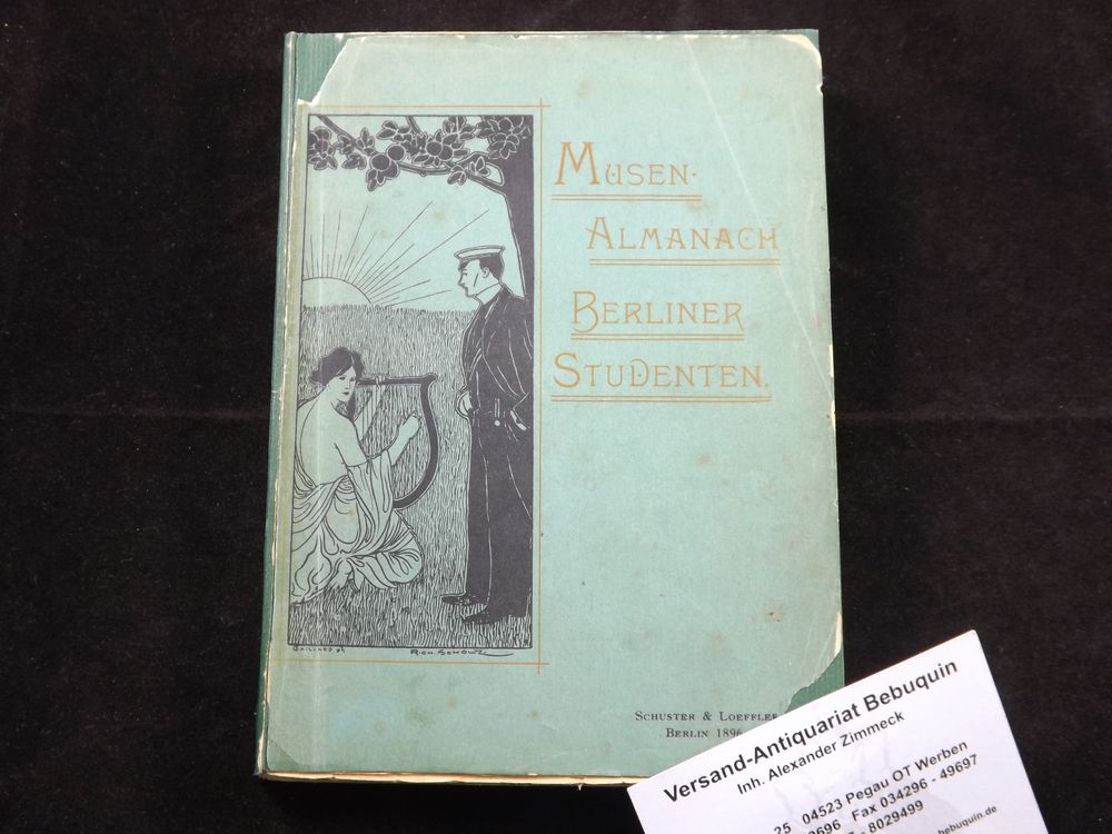 KASSNER, Rudolf: (Mit-Hrsg.) Musenalmanach Berliner Studenten. mit Gottlieb Fritz und Emil Schering. Berlin (Schuster und Löffler), 1896. 196 S., 4 Bl. ill. OKart. Kanten lädiert, Block unbeschnitten. EA WG² 1.