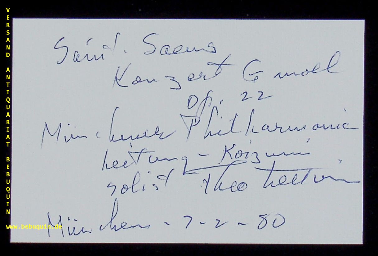LETTVIN, Theodore (Pianist): eigenhändig signierte und datierte Autogrammkarte. München (Philharmonie), 2.7.1980. 8 x 12,5 cm. Karteikarte.