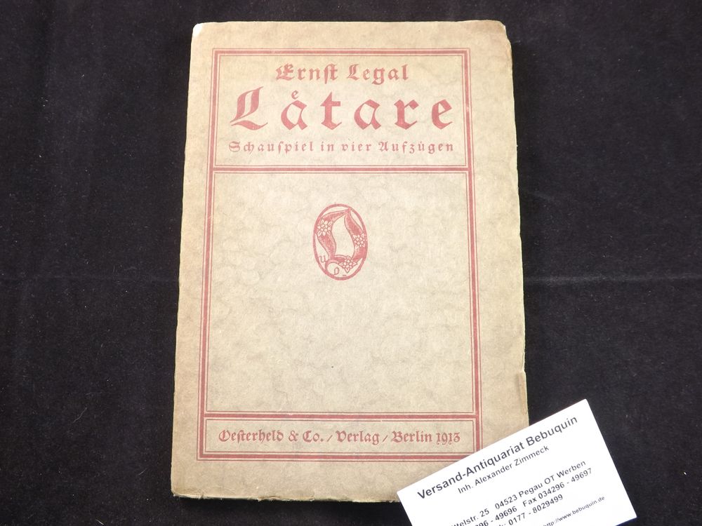 LEGAL, Ernst: Laetare. Schauspiel in vier Aufzügen. Berlin (Oesterheld), 1913. 96 S. OBr. unbeschnitten. EA des Erstlings des späteren Intendanten in Kassel und Berlin. DLL² 1486.