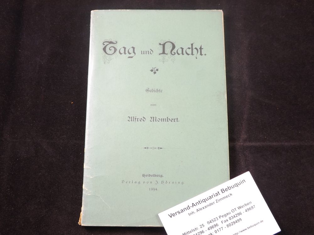 MOMBERT, Alfred: Tag und Nacht. Gedichte. Heidelberg (Hörning), 1894. VI, 119 S. grüner OKart. NaV, gutes Ex. EA des Erstlings WG² 1.