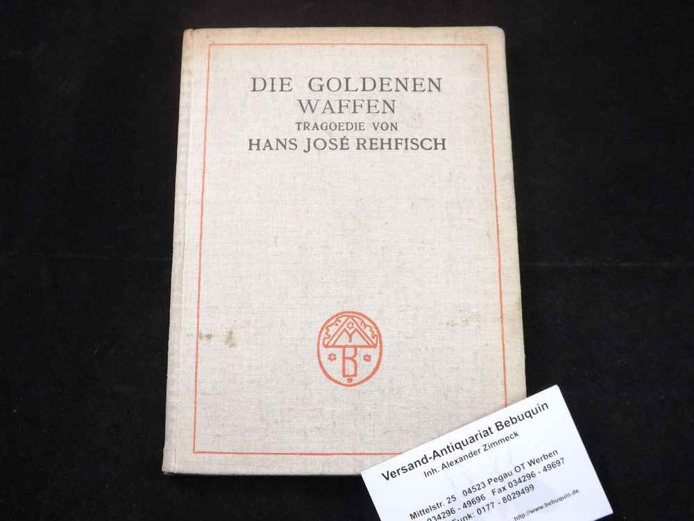 REHFISCH, Hans José: Die goldenen Waffen. Tragoedie. Berlin (Reiss), 1913. 87 S. OLn. Einband leicht angeschmutzt EA des Erstlingswerks WG² 1; Raabe 240.1.