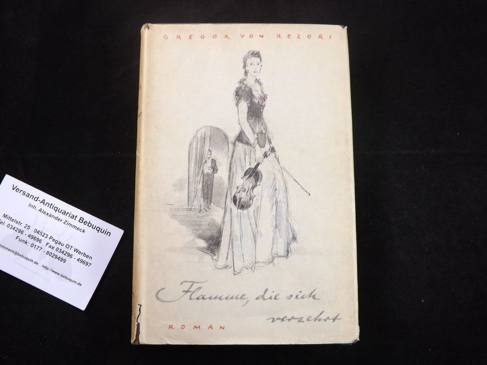 REZ(Z)ORI, Gregor von: Flamme, die sich verzehrt. Roman. Berlin (Propyläen), 1939. 170 (4) S. OLn. mit OUmschl. Umschlag leicht gebräunt. EA des Erstlingswerks WG² 1.