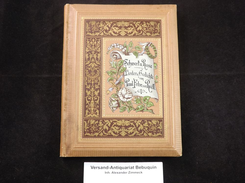 ROELL, Paul Freiherr von: Schwert und Rose. Lieder und Gedichte. Berlin (Vossische), 1886. kl. 8°. 127 S. ill. OLn. mit reicher Goldprägung und umlaufendem Goldschnitt. gutes Ex. EA des Erstlingswerks des Publizisten und Polizeirates.