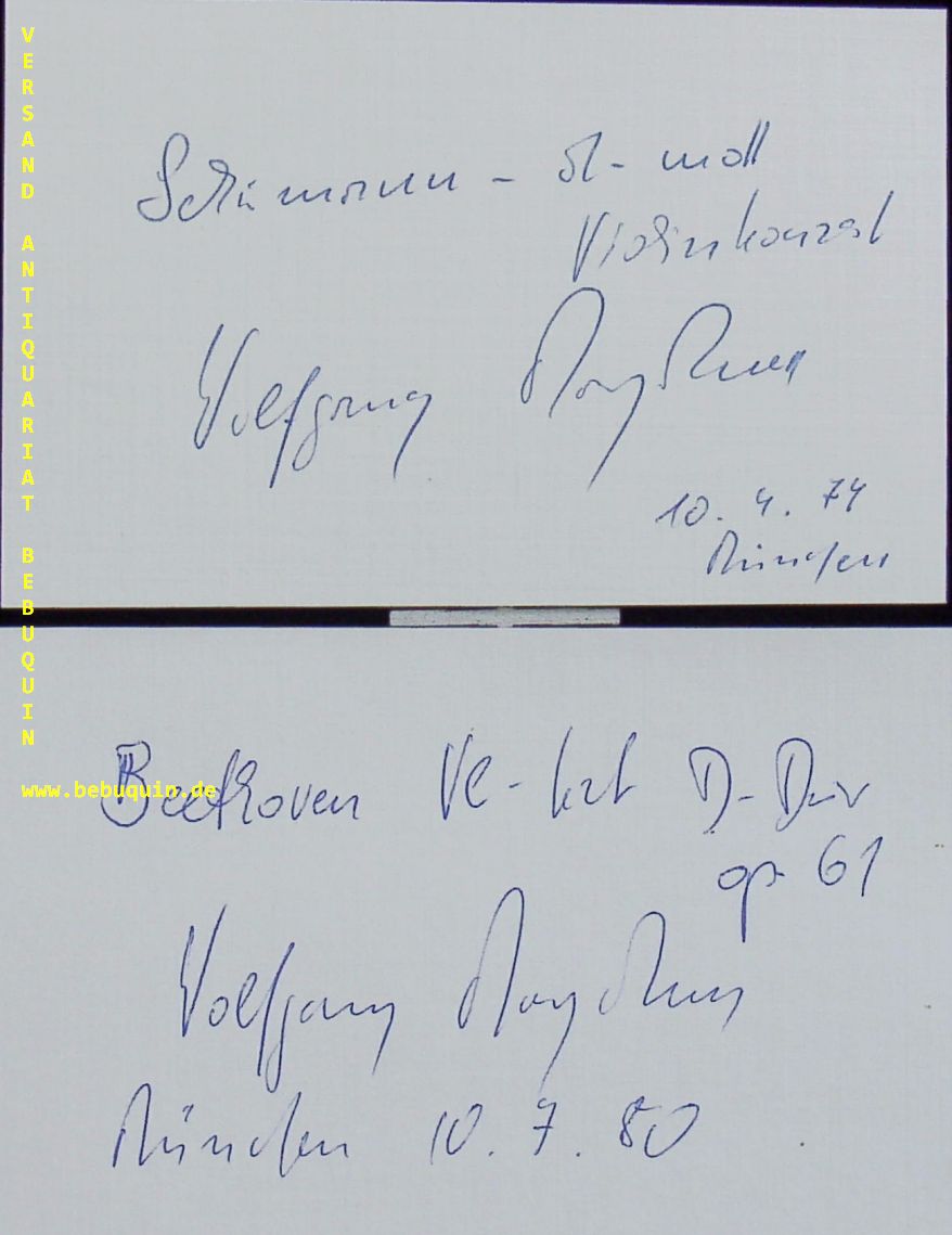 MARSCHNER, Wolfgang (Violinist): 2 eigenhändig signierte und datierte Autogrammkarte. München (Herkulessaal), 1974 + 1980. 8 x 12,5 cm. 2 Karteikarten. Wolfgang Marschner (* 23. Mai 1926 in Dresden; † 24. März 2020) war ein deutscher Violinist, Geigenpädagoge, Komponist und Dirigent. (Wikipedia)