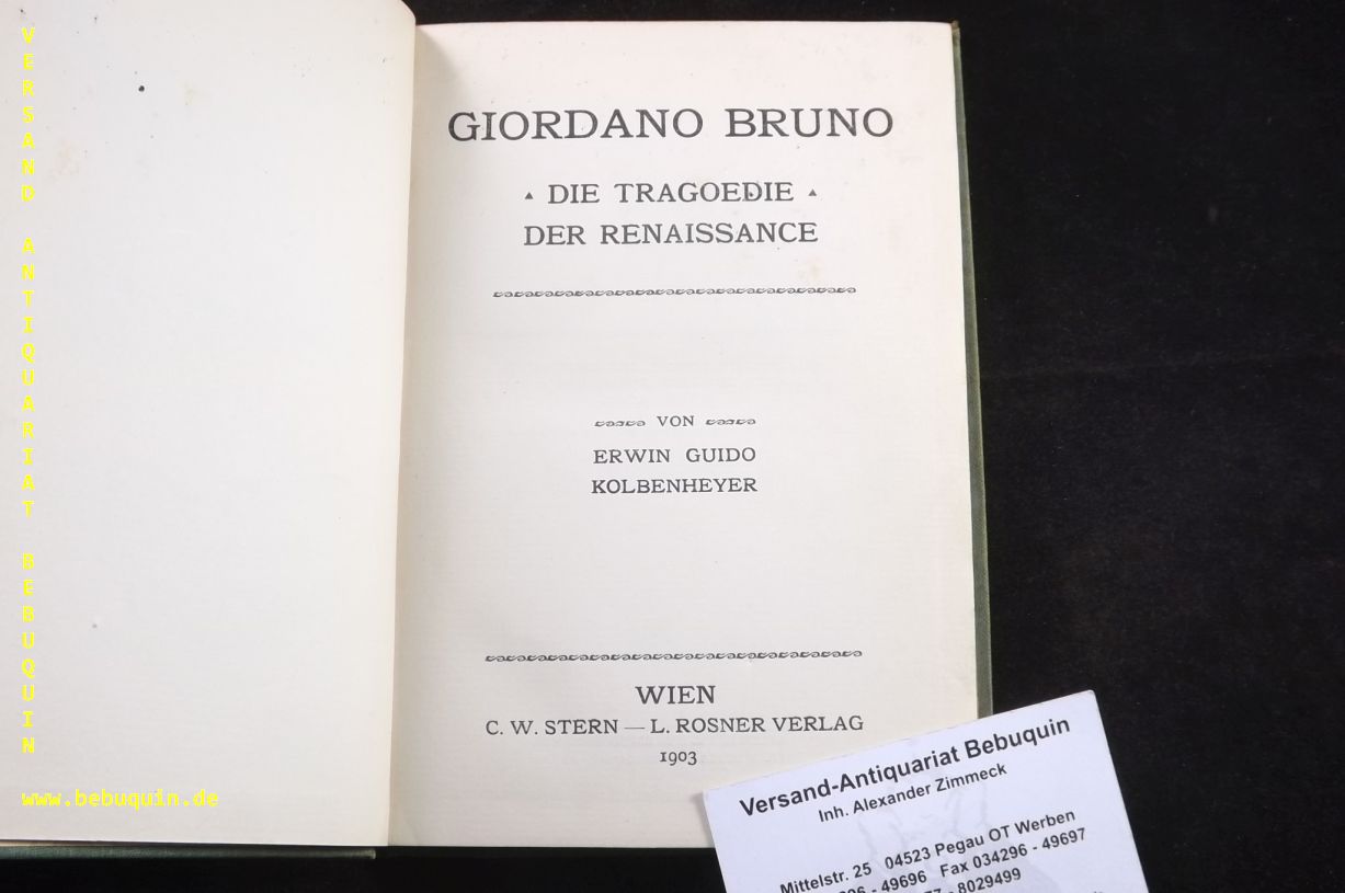 KOLBENHEYER, Erwin Guido: Giordano Bruno. Die Tragödie der Renaissance. Wien (Stern), 1903. 210 S. OLn. Einband mit Schmutzrand. EA des Erstlings WG² 1.