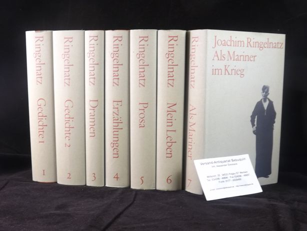 RINGELNATZ, Joachim: Das Gesamtwerk. Hrsg. von Walter Pape. 7 Bände. Berlin (Henssel), 1983-84. ca 3000 S. kaminrote OLn mit OUmschl. gut erhalten. EA WG² 45 dieser seltenen ersten Werkausgabe. (d.i. 1.– 3.Tsd.)