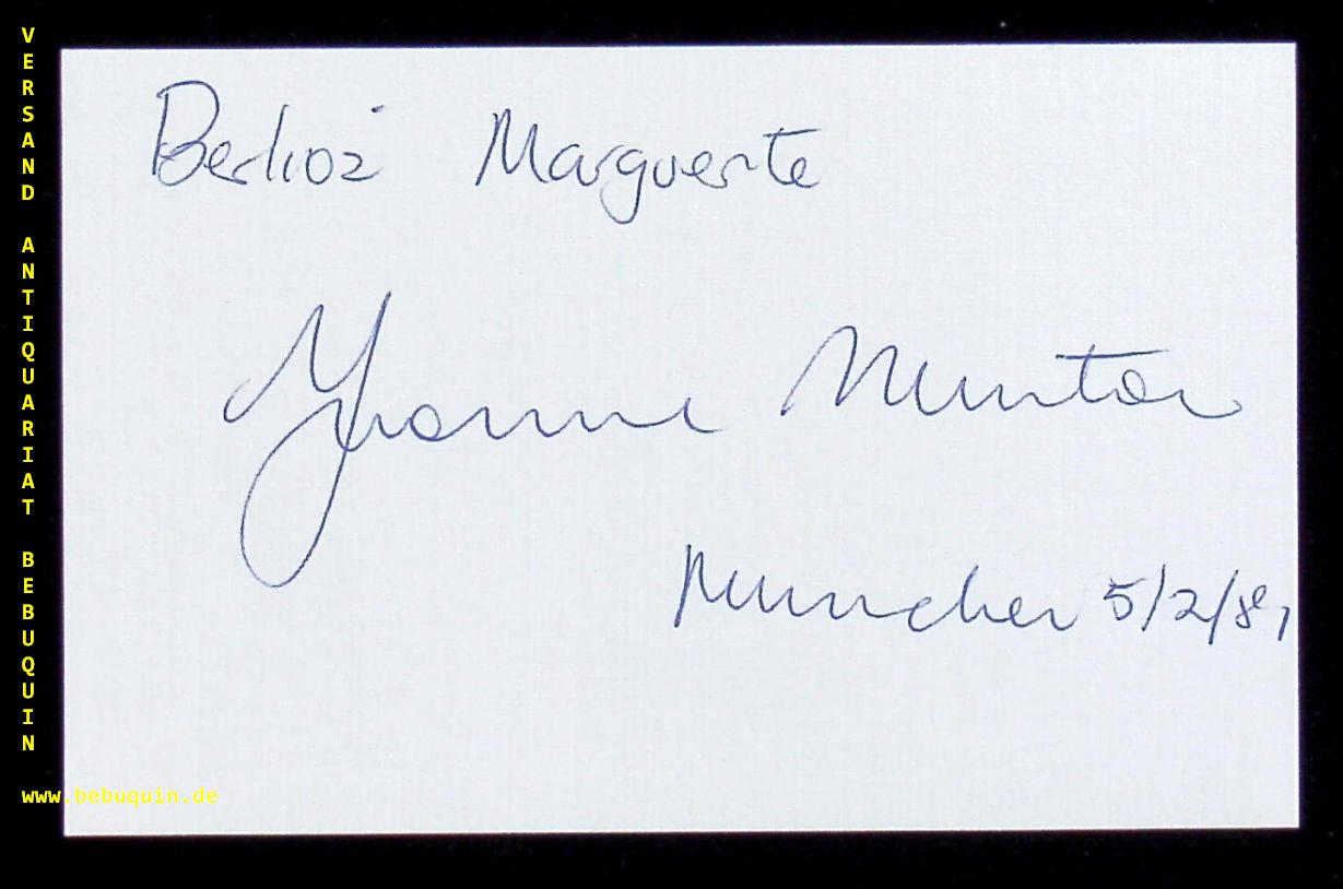 MINTON, Yvonne (Mezzosopran): eigenhändig signierte und datierte Autogrammkarte. München (Kongresssaal), 5.2.1981. 8 x 12,5 cm. Karteikarte. Yvonne Fay Minton (* 4. Dezember 1938 in Sydney) ist eine australische Opernsängerin (Mezzosopran), die in den 1970er Jahren Weltruhm als „Kundry“ (Parsifal), „Brangäne“ (Tristan und Isolde) und „Octavian“ (Der Rosenkavalier) erlangte. (Wikipedia)