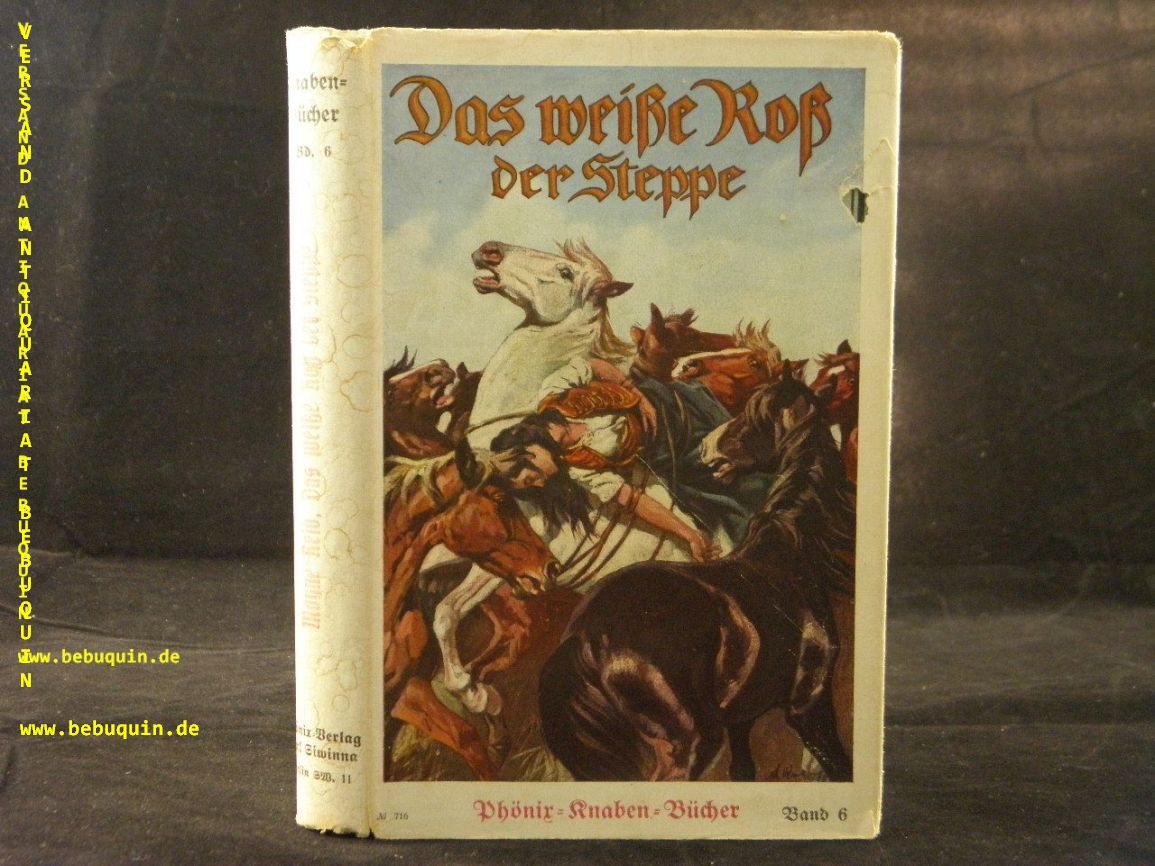 REID, Thomas Mayne: Das weiße Roß der Steppe. Eine Erzählung aus den Wildnissen von Mexiko. D.v. Walter Heichen. Berlin (Phönix), (1921). 156 (4) S. mit 1 Titelbild. ill. OPb mit OUmschl. Umschlag mit kleinem Loch, gutes Ex. EA Klotz 5724/64.
