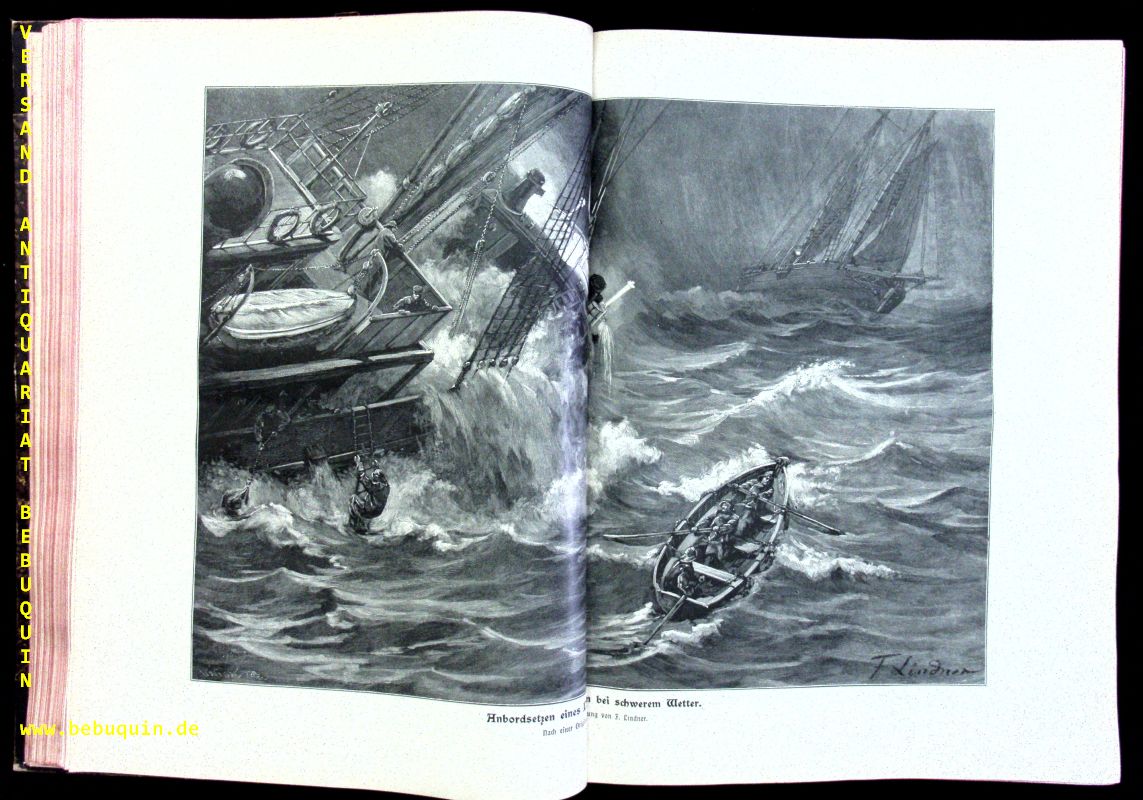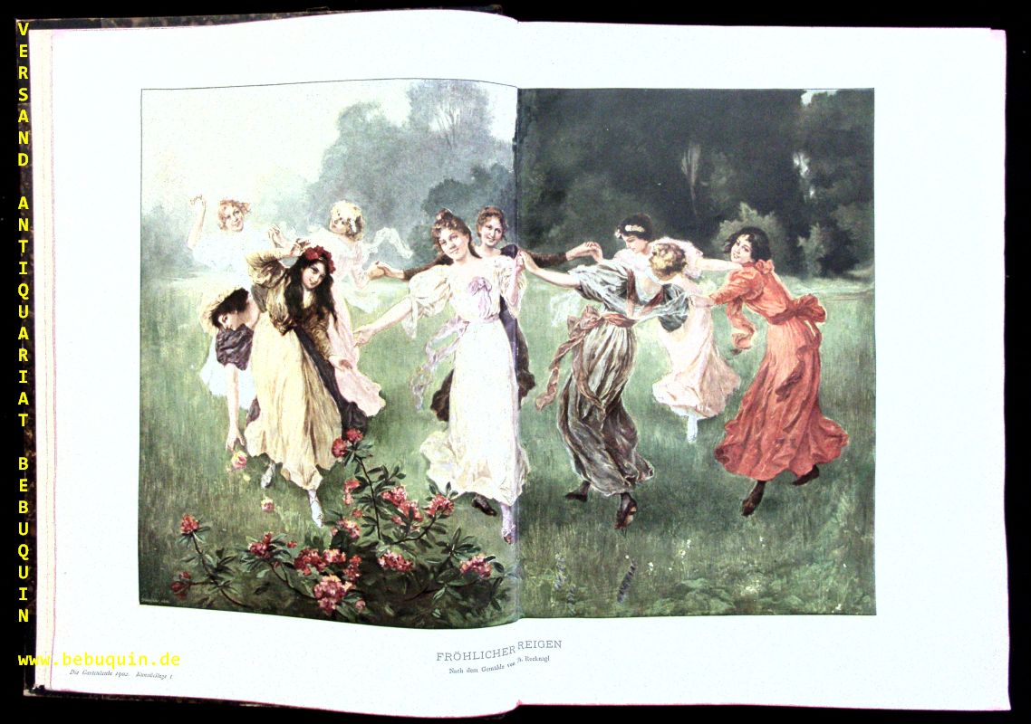 DIE GARTENLAUBE.– Illustriertes Familienblatt. Jahrgang 1902. Leipzig (Keil), 1902. 4°. VI, 905 S. mit zahlr. Textabb. + vielen teils farb. teils doppelblattgroßen Bildtafeln HLdr der Zeit mit goldgeprägtem Rücken. Kanten berieben, eine Lage lose, sonst gut erhalten. = 50. Jg. Die Textbeiträge sind u. a. von Paul Heyse: Die Ärztin, und von W. Heimburg: Sette Oldenroths Liebe. Die Kunsttafeln sind u. a. von Hans Thoma, R. H. Armbruster, Th. Recknagl und G. Conz.