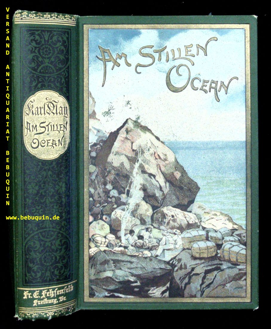 MAY, Karl: Am Stillen Ozean. Reiseerzählungen. 16.– 20. Tsd. Freiburg (Fehsenfeld), (1898). 607 S. ill. OLn. mit goldglänzendem Rücken (DB 60). kaum schief gelesen, vereinzelt braunfleckig, schönes Ex. = Gesammelte Reiseerzählungen, Bd. XI. seltene 3. Auflage Plaul 252.3.
