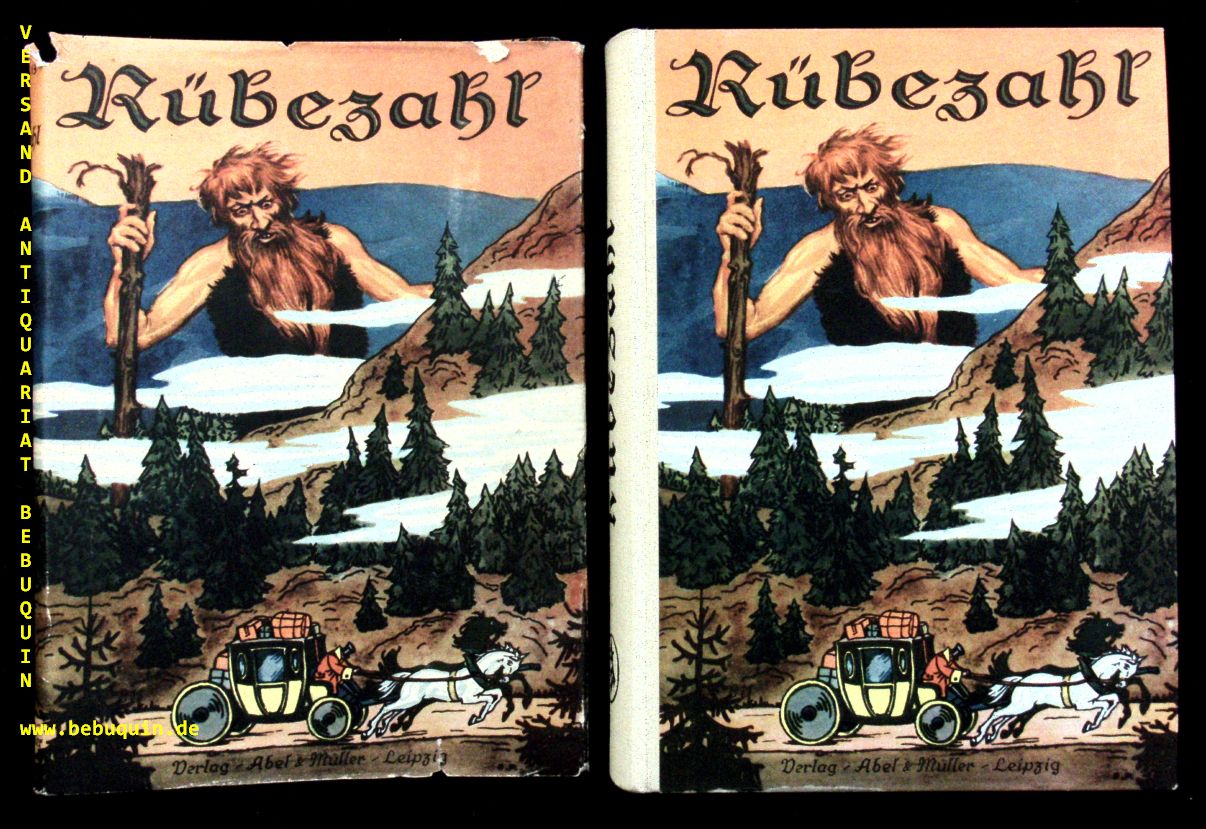 MÜLLER, K.A.: (d.i. Karl August Müller) Rübezahl der Herr des Riesengebirges. 4. Aufl. Leipzig (Abel & Müller), ca 1930. 200 S. mit 7 bundetbn und vielen schwarzen Bildern von Rolf Winkler. farb. ill. OHLn. mit OUmschl. mit seltenem Motiv. Umschlagkanten minimal bestoßen, Name und Nummer auf Titelseite, sonst sehr schönes Ex. nicht bein Klotz 4871.