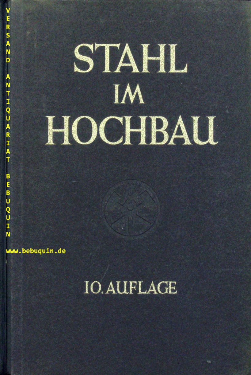 ARCHITEKTUR.– STAHL IM HOCHBAU.– Taschenbuch für Entwurf, Berechnung und Ausführung von Stahlbauten. Hrsg. vom verein Deutscher Eisenhüttenleute im N S-Bund. 3. Nachdruck der 10. Aufl. Berlin (Springer), 1942. Gr. 8°. XXII, 777 (55) S. mit über 200 Textabb. OHLn mit Blind- und Goldprägung. gut erhalten.