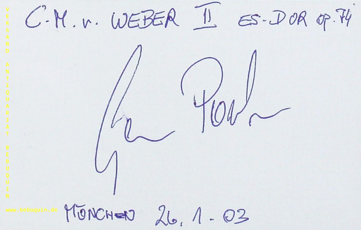 PACHINGER, Gerald (Klarinettist): eigenhändig signierte und datierte Autogrammkarte. München (Philharmonie), 26.1.2003. 8 x 12,5 cm. Karteikarte. Gerald Pachinger ist Gründungsmitglied des Gustav Mahler Jugendorchesters unter Claudio Abbado und seit Oktober 1987 Soloklarinettist der Wiener Symphoniker.