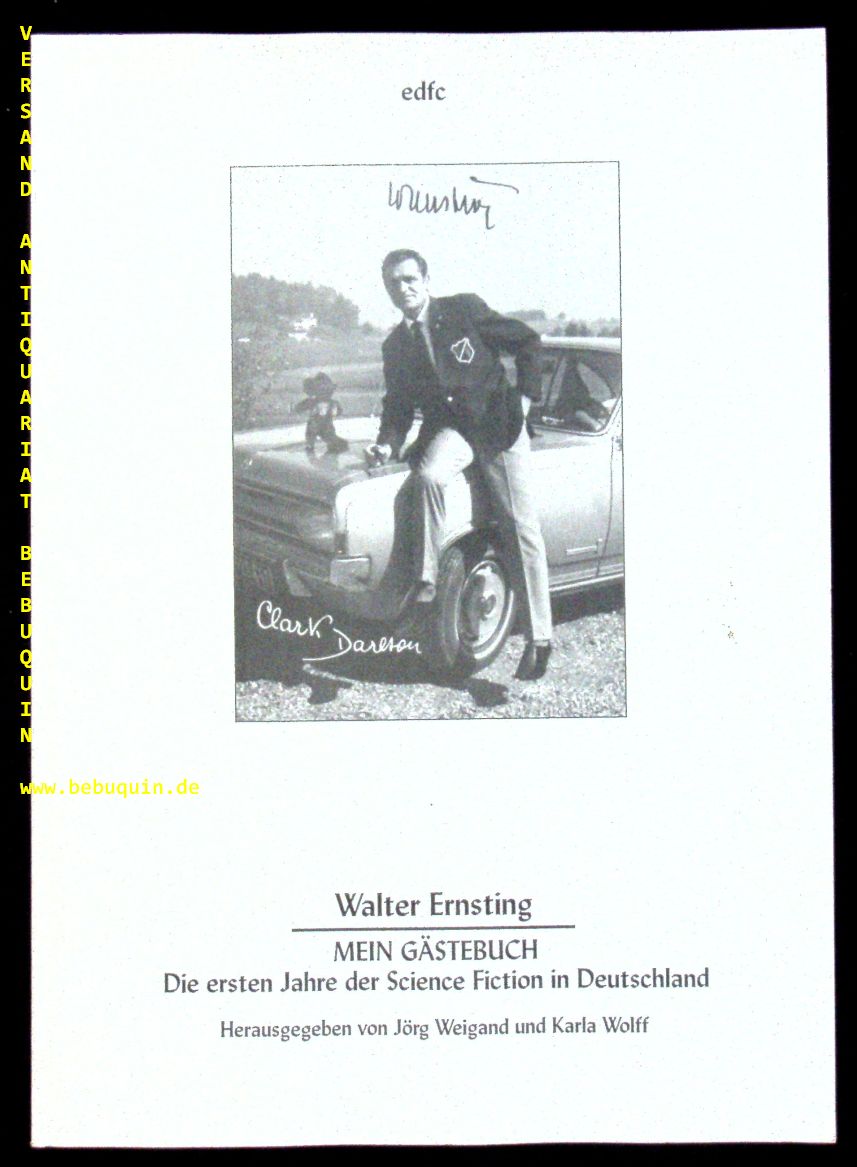 ERNSTING, Walter: Mein Gästebuch. Die ersten Jahre der Science Fiction in Deutschland. Hrsg. von Jörg Weigand und Karla Wolff. Passau (edfc), 2003. 4°. 182 S. mit zahlr. Abb. ill. OKart. gutes Ex. EA.
