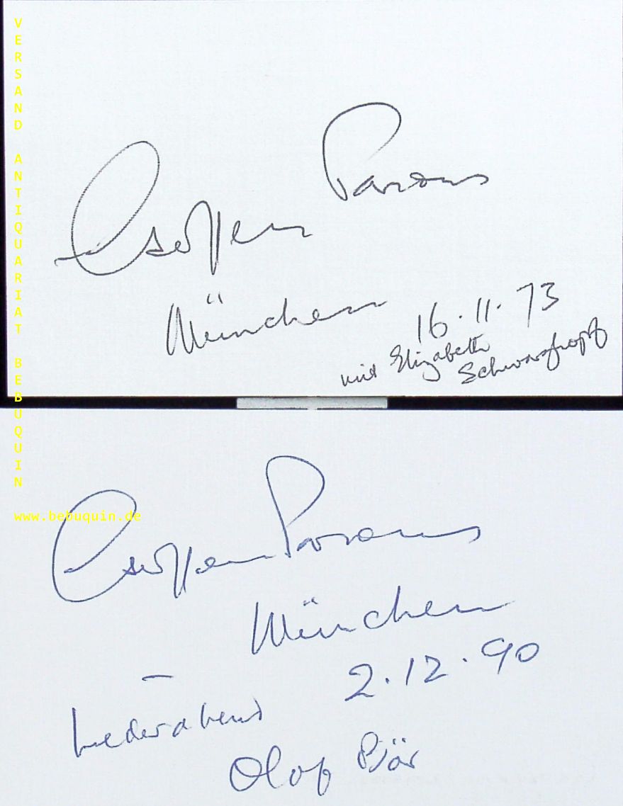 PARSONS, 2 eigenhändig signierte und datierte Autogrammkarten.