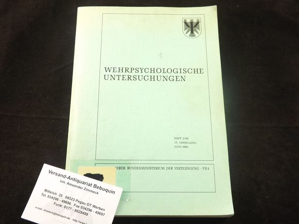 FLACH, H.: Suizidversuche in der Bundeswehr. Eine sozialpsychologische Untersuchung. Bonn, 1980. Gr. 8°. XXVIII, 238 S. OKart. Ordnungsgemäß aus Bundeswehrbeständen ausgesondertes Bibliotheksexemplar (Rückenschild, Stempel). = Wehrpsychologische Untersuchungen, Heft 2/80. EA.