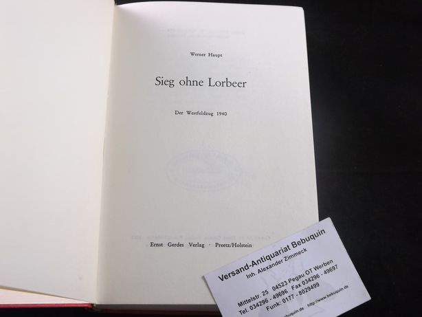 2. WELTKRIEG.– HAUPT, Werner: Sieg ohne Lorbeer. Der Westfeldzug 1940. Preetz (Gerdes), 1965. 366 S. + zahlr. Bildtafeln. OLn mit goldgeprägter Deckelvignette. Ordnungsgemäß aus Bundeswehrbeständen ausgesondertes Bibliotheksexemplar (Rückenschild und Stempel).