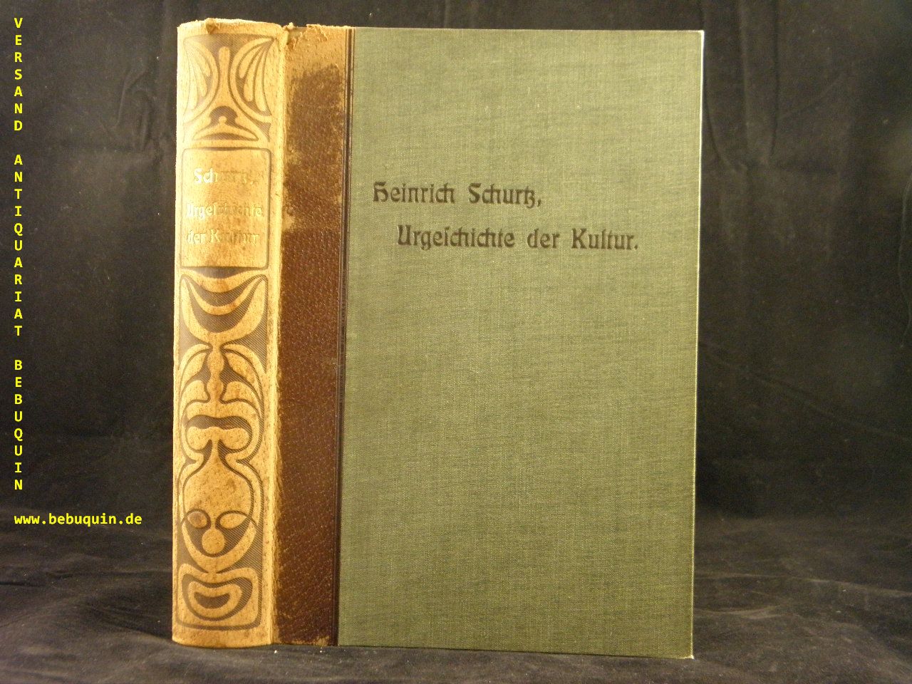 URZEIT.– SCHURTZ, Heinrich: Urgeschichte der Kultur. Leipzig (BI), 1900. 4°. XIV, 658 (4) S. mit 434 Textabb, 8 Farbtafeln, 15 Tontafeln und 1 Kartenbeilage. OHLdr. oberes Kap. berieben, sonst gut erhalten. EA.