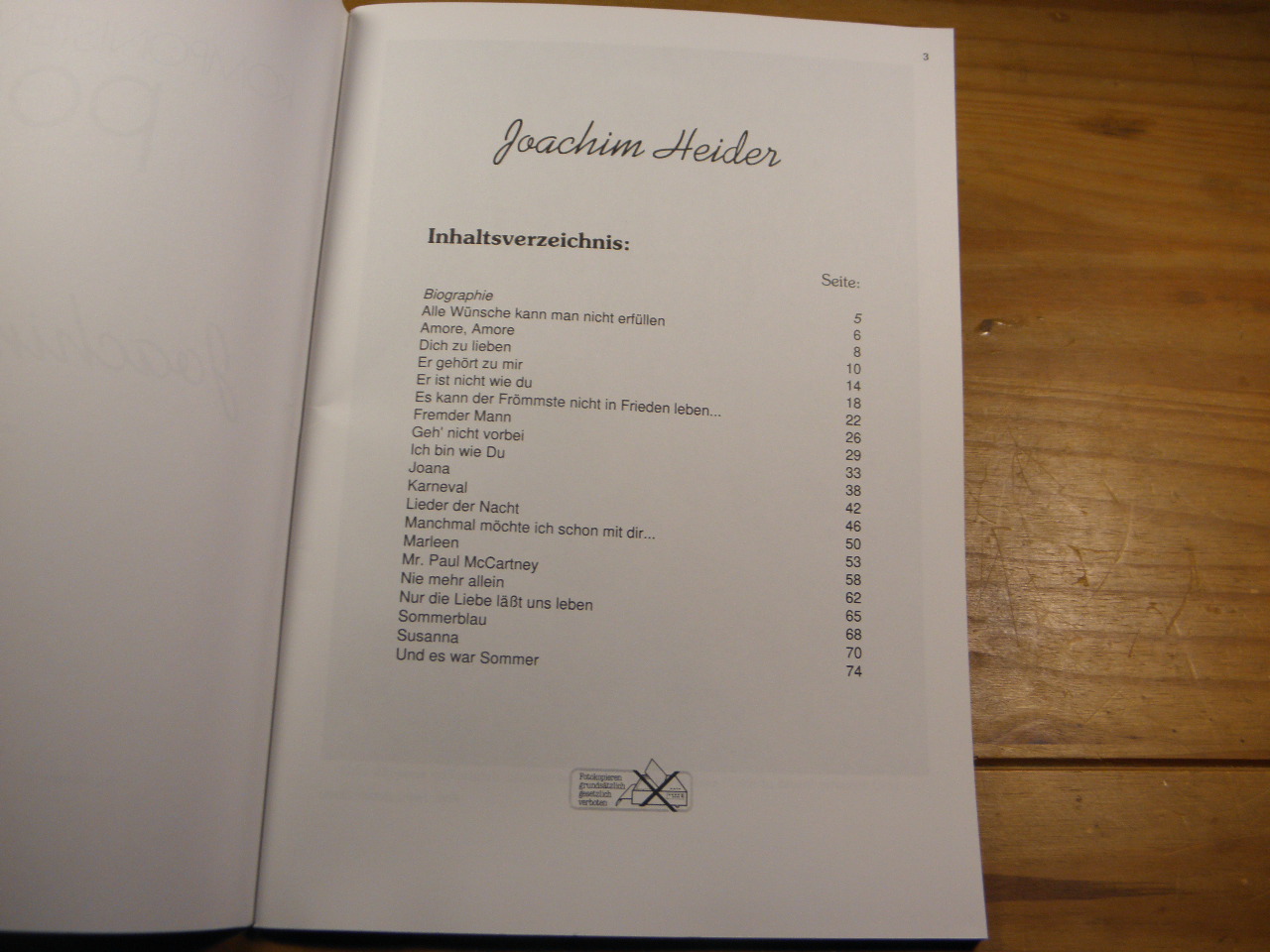 SONGBOOKS.– HEIDER, Joachim: Komponisten – Portrait. Mit Biographie und Fotos. Gesang und Klavier. Berlin (Intro), ca 1975. 4°. 76 S. mit Noten und Bildern. ill. OKart. gutes Ex. EA. Inhalt siehe Foto.