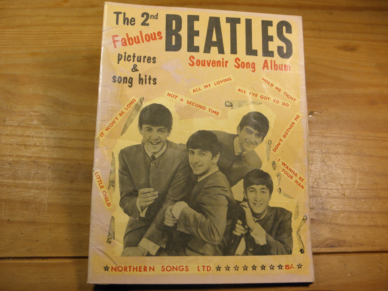 SONGBOOKS.– BEATLES: The 2nd fabulous souvenir Song Album. Pictures and song hits. Gesang und Klavier. London (Northern Song), 1964. 4°. 26 S. mit Noten und Bildern. ill. OKart. Cellophan teils abgeblättert. EA. Inhalt siehe Foto.