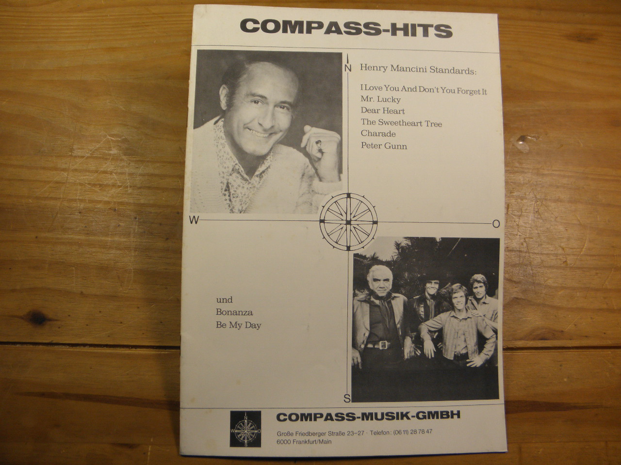 SONGBOOKS.– MANCINI, Henry. Standards. Compass – Hits. Klavier und Gesang. Frankfurt (Compass), 1963. 4°. 20 S. mit Noten. ill. OKart. gutes Ex. EA. Inhalt siehe Foto.