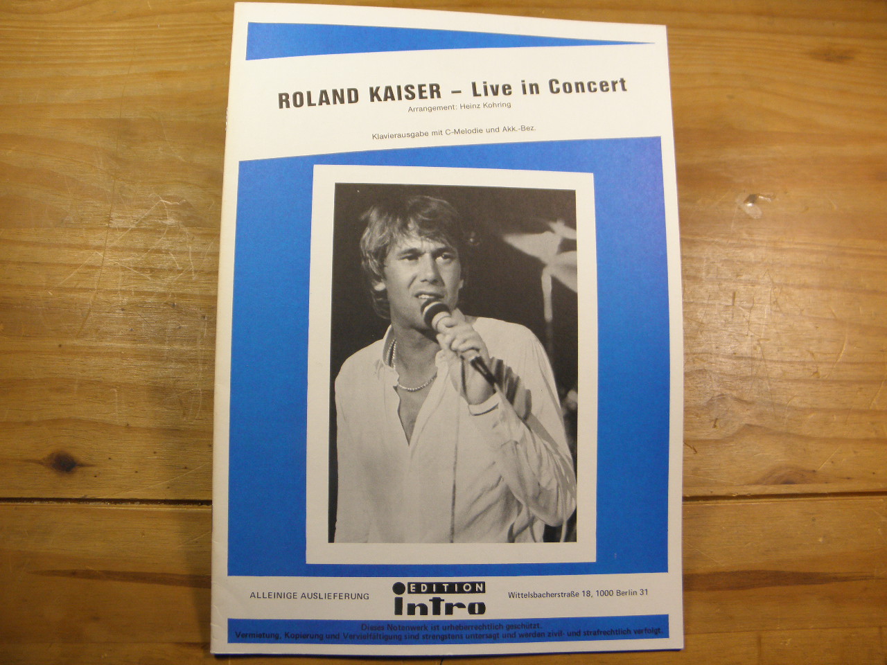 SONGBOOKS.– KAISER, Roland: Live in Concert. Klavier mit C-Melodie und Akk.-Bez. Berlin (Hansa), 1987. 4°. 24 S. mit Noten. ill. OKart. gutes Ex. EA. Inhalt siehe Foto.