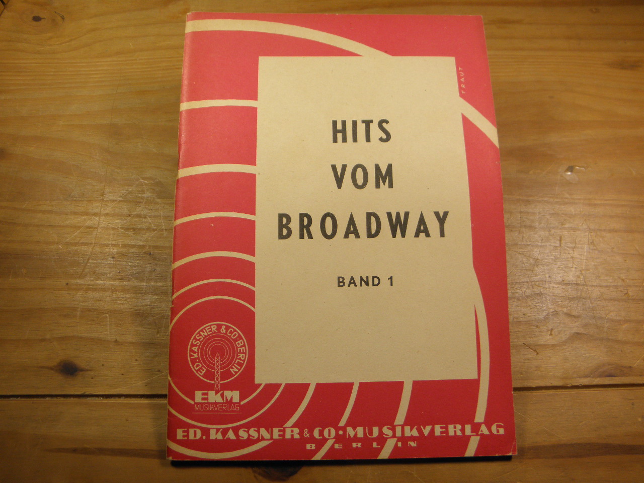 LIEDERBÜCHER.– HITS VOM BROADWAY.– Band 1. Gesang und Klavier. Berlin (Kassner), 1962. 4°. 58 S. mit Noten. ill. OKart. gutes Ex. EA. Inhalt siehe Foto.
