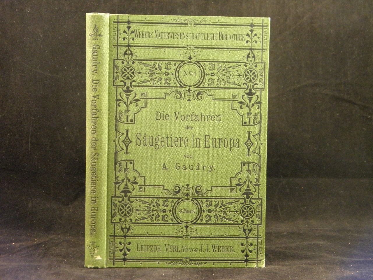 URZEIT.– GAUDRY, Albert: Die Vorfahren der Säugetiere in Europa. D.v. William Marshall. Leipzig (Weber), 1891. VIII, 222 (1) S. mit 40 teils gefalteten Textabb. OLn mit reicher Schwarzprägung. StaV., gutes Ex. dt. EA. Jean Albert Gaudry, genannt Albert Gaudry, (* 16. September 1827 in Saint-Germain-en-Laye; † 27. November 1908 in Paris) war ein französischer Geologe und Paläontologe, der durch seine Forschungen auf dem Gebiet der fossilen Säugetiere einen Beitrag zur Evolutionstheorie leistete. (Wikipedia)