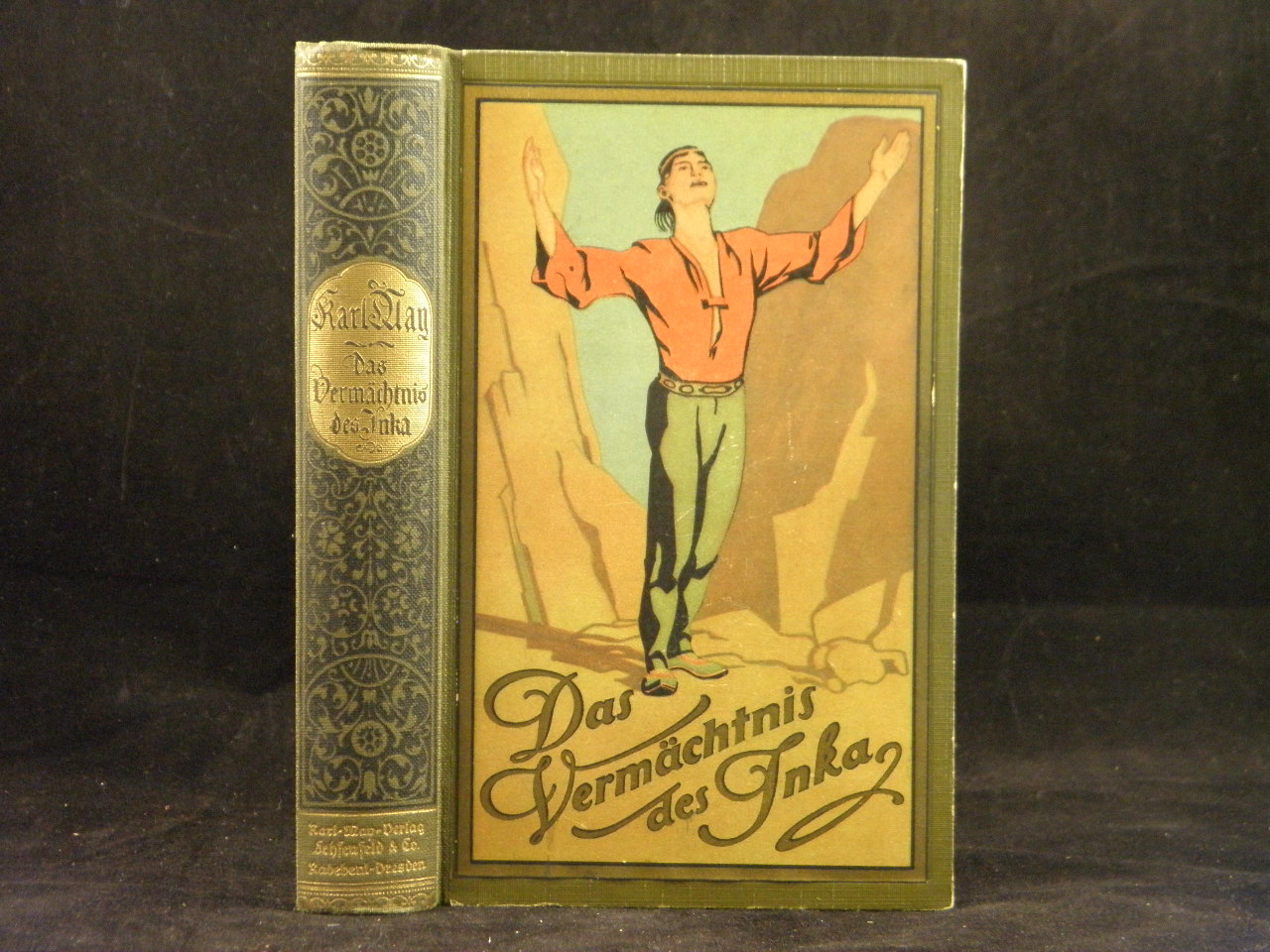MAY, Karl: Das Vermächtnis des Inka. Erzählung aus Südamerika. 121.– 134. Tsd. Volksausgabe. Radebeul (Karl May), (1933). 580 S. farb. ill. OHLn. mit goldglänzendem Rücken und farbstarkem Einband. = Gesammelte Werke, Bd. 39. seltene Ausgabe. Hermesmeier / Schmatz GW 39.15.