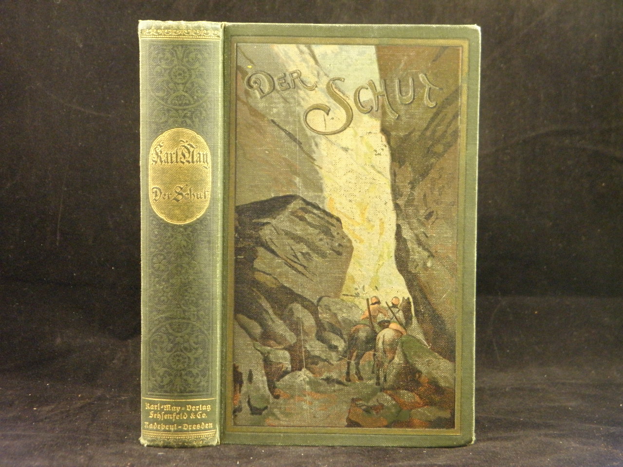MAY, Karl: Der Schut. Reiseerzählung. 60.– 65. Tsd. Radebeul (Karl May Stiftung), (1914). 645 (2) S. farb. ill. OLn. (DB7:V2). Einband leicht geblichen, trotzdem überraschend gut erhalten. = Gesammelte Werke, Bd.6. Hermesmeier / Schmatz GW 6.13.