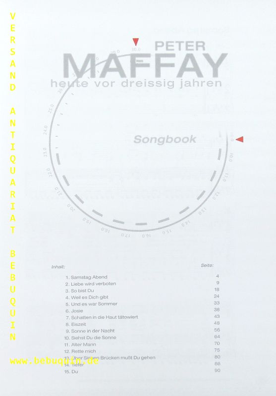 SONGBOOKS.– MAFFAY, Peter: Heute vor dreissig Jahren. Singbook. Köln (Bosworth), 2001. 4°. ca 100 S. mit Noten und zahlr. Bildern. ill. OKart. gutes Ex. EA.