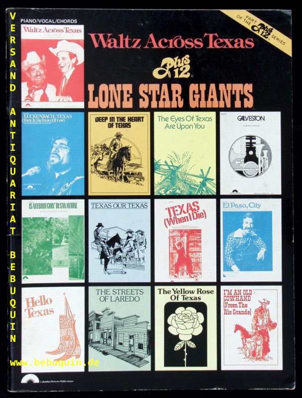 SONGBOOKS.– WALTZ ACROSS TEXAS.– Plus 12 Lone Star Giants. Miami (Columbia), 1981. 4°. 37 S. mit Noten. ill. OKart. gutes Ex. EA.