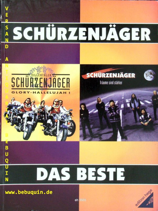 SONGBOOKS.– ZILLERTALER SCHÜRZENJÄGER: Das Beste. Bearb. von Wilhelm Binder. Für Voice, Piano und Gitarre. Pommelsbrunn (Hage), 1996. 4°. 68 S. mit Noten. farb. ill. OKart. gutes Ex. EA.