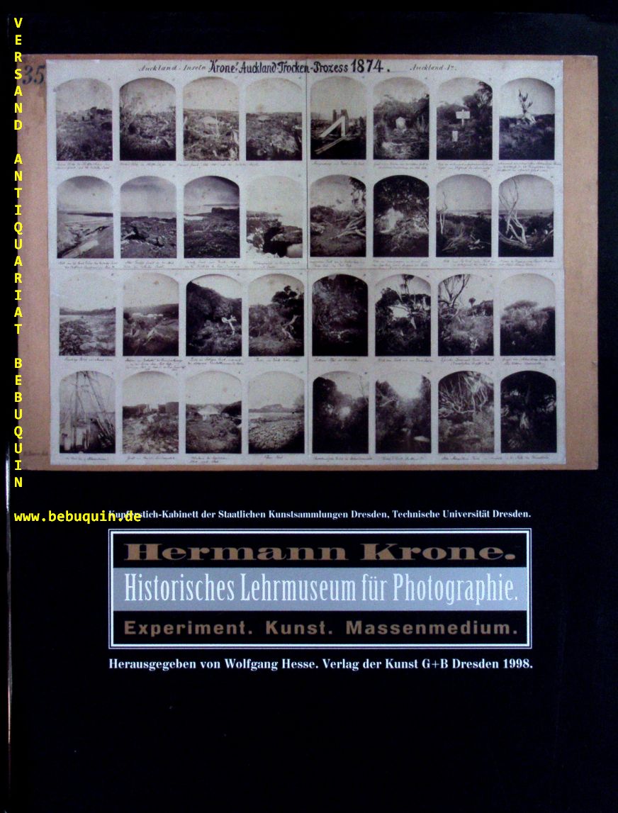 HESSE, Wolfgang: (Hrsg.) Hermann Krone. Historisches Lehrmuseum für Photographie. Experiment. Kunst. Massenmedium. Dresden (Kunst), 1998. Gr. 4°. 365 S. mit sehr vielen Bildern und Bildtafeln. OPb mit OUmschl. neuwertig. EA.
