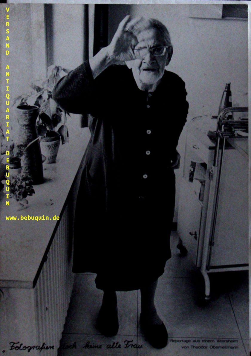 OBERHEITMANN, Theodor: „Fotografiere doch keine alte Frau“. Reportage aus einem Altenheim. o.O. (o.Vlg.), 1977. 4°. 18 Bl. mit Fotografieen. ill. OKart. gutes Ex. seltene EA mit dem dazugehörigen gefalteten Plakat inliegend.