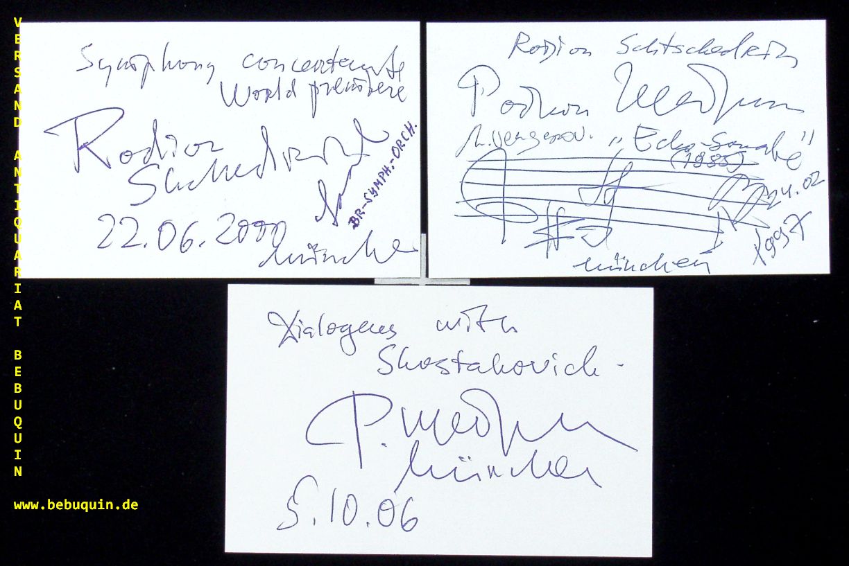 SCHTSCHEDRIN, 3 eigenhändig signierte und datierte Autogrammkarte: Echo Sonate